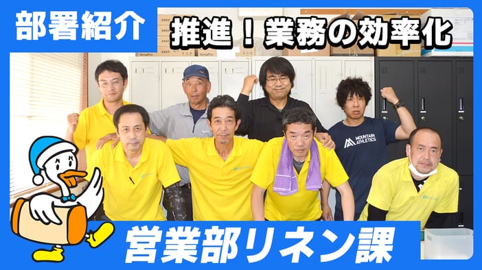本日、『部署紹介/営業部リネン課』編を更新いたしました。 ↓ 動画の視聴は画面の真ん中の赤矢印をクリックしてください。※音声が流れますのでご注意ください。