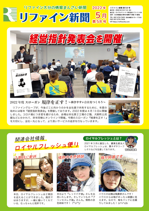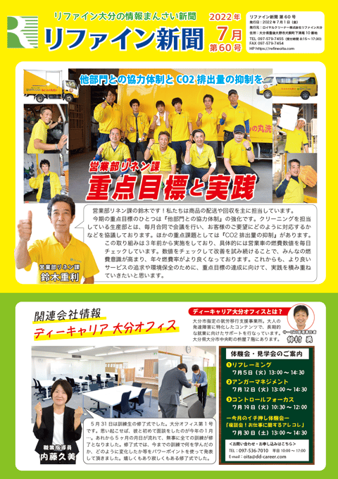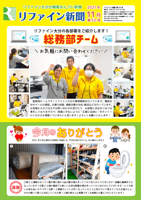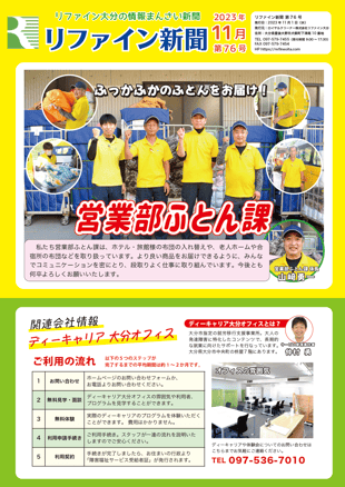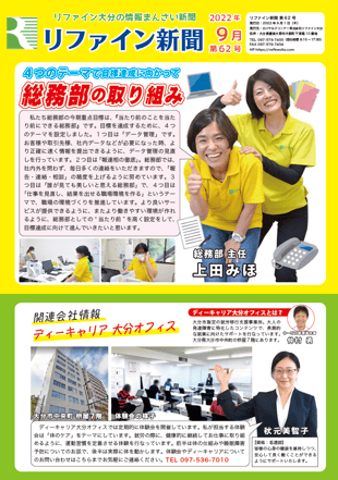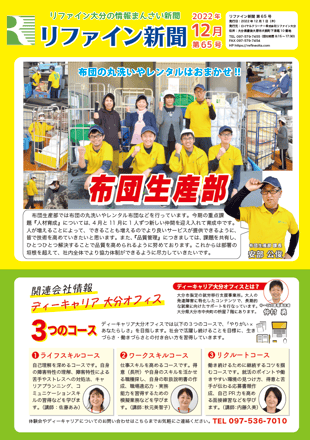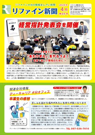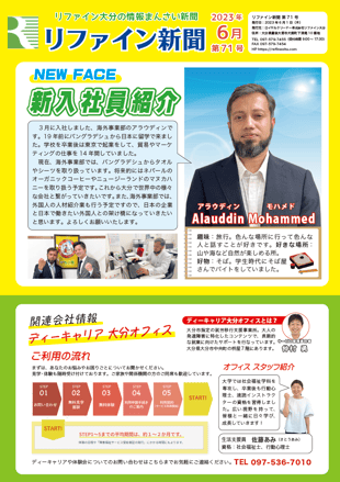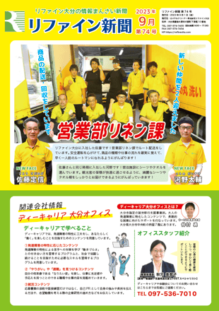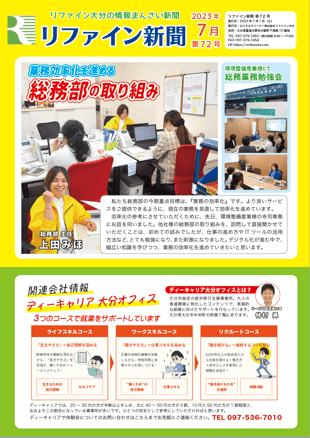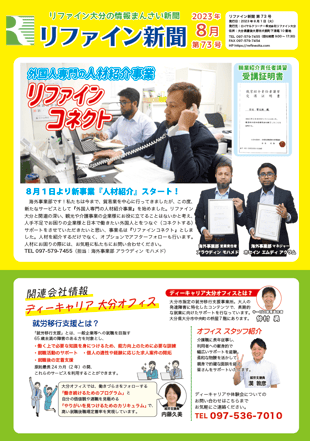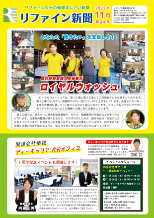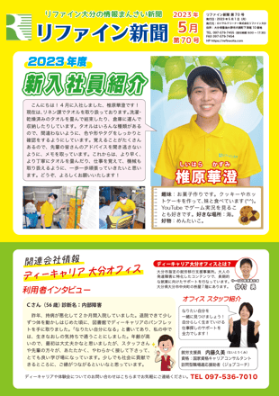 リファイン大分では毎月ニュースレター『リファイン新聞』を発行しています。日々の取り組みやチーム紹介などを掲載しておりますので、ぜひダウンロードしてご覧ください。