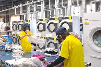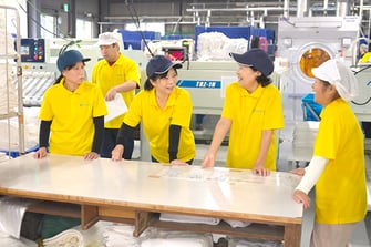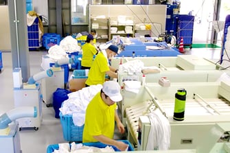 私たちは昭和61年2月にふとん丸洗い専門店として開業しました。その後、おんせん県大分の観光を下支えするリネン業(※リネン業とはホテル・旅館へシーツ類、タオル類、浴衣などをリースする仕事で、使用済みのものは回収し、洗濯して再びリースするという仕事です。その他の販路先として、病院や介護施設などもあります)を始め、現在ではこの仕事が主力サービスです。また、貸布団や介護施設向け私物洗濯など業務は多岐に渡ります。クリーニング業界は斜陽産業と思われがちなのですが、このリネン業はインバウンド需要の影響で現在も伸び続けている業界です。今後も伸び続けるであろう観光業界を私たちはクリーニングの力でしっかり支えていこうと思います。ただ、私たちはこの盛況な業界に頼るだけでなく、今後も新サービスを模索し、クリーニングの持つ可能性を社会へ広めていこうと考えています。
